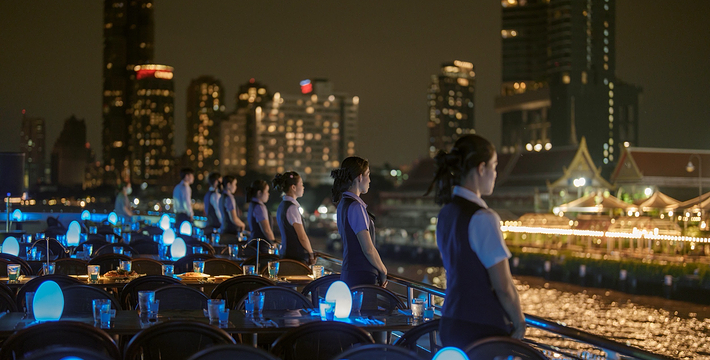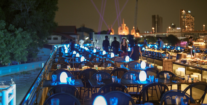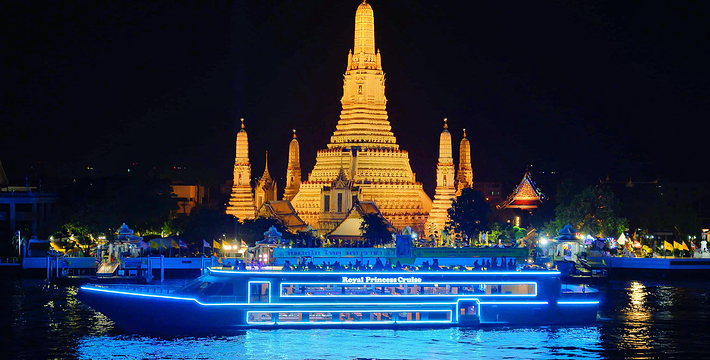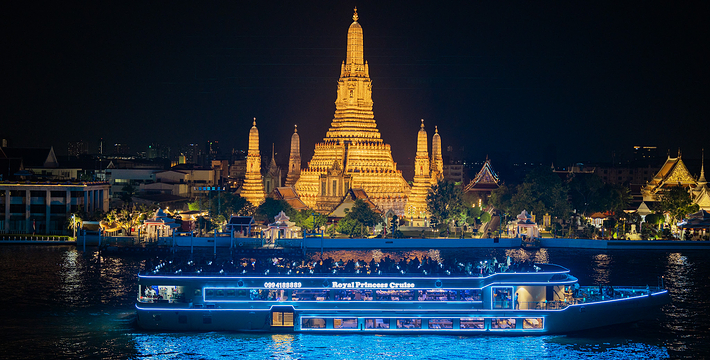 皇家公主号(Royal Princess Cruises)享受2小时的晚餐游船之旅,沿着曼谷的主要水道行进。体验城市寺庙和其他历史古迹的神奇魅力。登上安全舒适的巡洋舰,在夜间体验湄南河。从露天上层甲板上欣赏河岸的景色。沉浸在曼谷的城市地标和夜间照明的纪念碑的氛围中,享用优雅的国际美食自助晚餐,伴以浅色背景音乐。