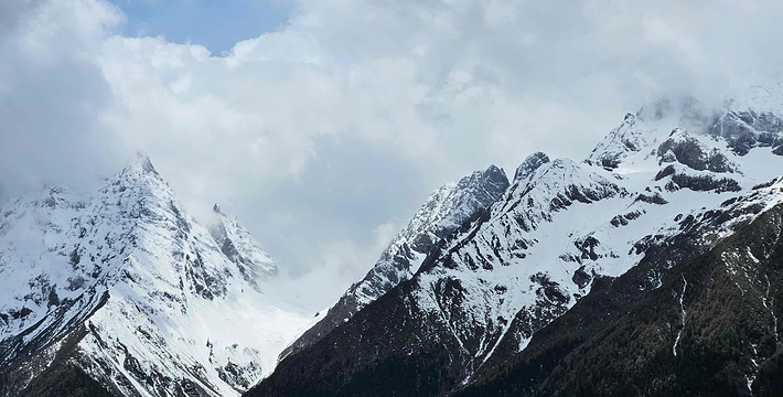 四姑娘山以雄峻挺拔闻名,山体陡峭,直指蓝天,冰雪覆盖,银光照人。山麓森林茂密,绿草如茵,清澈的溪流潺潺不绝,宛如一派秀美的南欧风光,人称“中国的阿尔卑斯”。四姑娘山位于小金县和汶川县交界处,由横断山脉中四座毗连的山峰组成,根据当地藏民的传说,是四个冰清玉洁的姑娘的化生,因而得名四姑娘山。四位姑娘中,海拔6250米,大姐、二姐、三姐分别为5355米,5454米,5664米,她们肩并肩,常年头顶白云,肩披冰川,腰系翠森,一个个冰洁玉润,清丽俊俏,她们又被称为“蜀山之后”。美的山峰、美的沟壑、美的行云、美的流水。近年来已成为中外登山者常来的旅游胜地。四姑娘山一带森林茂盛,气候宜人,为丰富多彩的动植物提供了生存环境。在海拔2500米以上地段有原始森林分布,以高山针叶林、针阔叶混交林为主体。这里出产的红杉、红豆杉、连香树等是四川特有的珍贵树种。在海拔3700米以上地段还有高山草甸分布。每当春夏之交,这里绿草如茵,繁花似锦,是良好的夏季牧场。山上还盛产天麻、贝母、虫草等名贵中药材。这里的兽类约有五六十种,鸟类约三百种左右。其中属国家保护的珍稀动物有:大熊猫、小熊猫、金丝猴、白唇鹿、毛冠鹿、雪豹、苏门羚、金猫、扭角羚、林麝,以及红腹角雉、血雉等。举世闻名的卧龙大熊猫自然保护区就坐落在四姑娘山东坡。四姑娘山的河谷地带还生长着核桃、苹果、梨和花椒等土特产品,是一个美丽富饶的好地方。