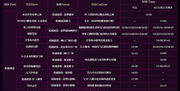 11/01-11/30;周六至周日;09:00-21:00开园;(20:00停止入园)
