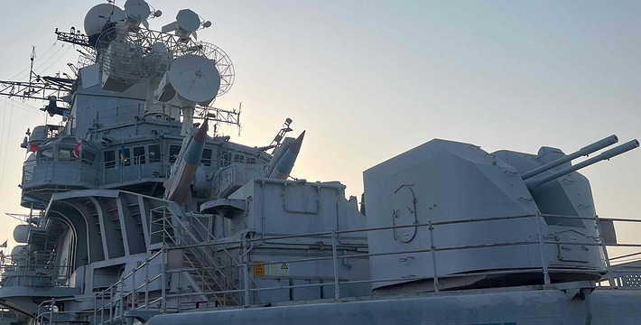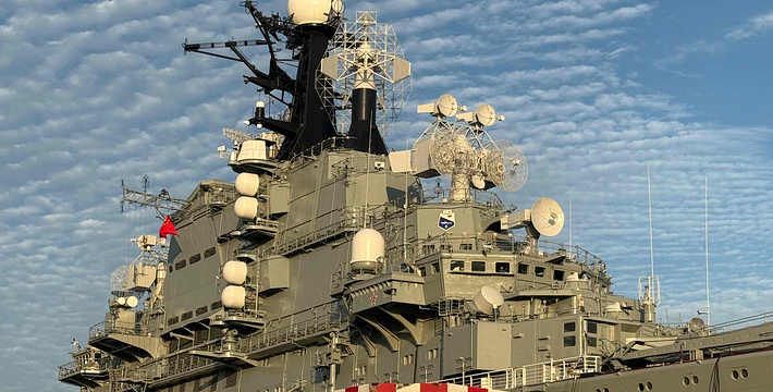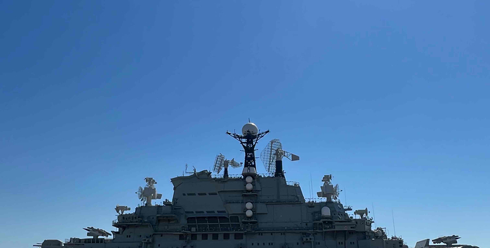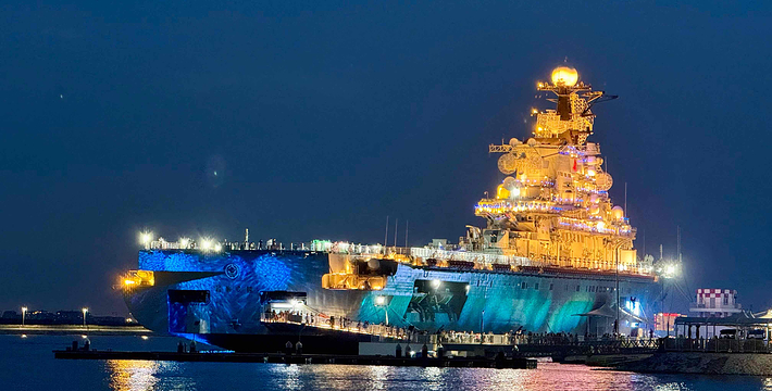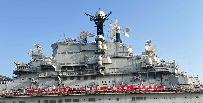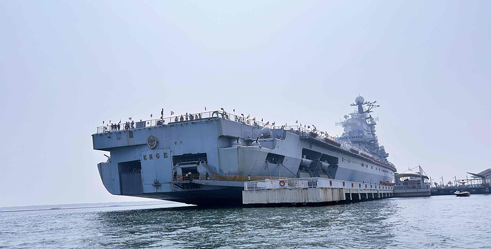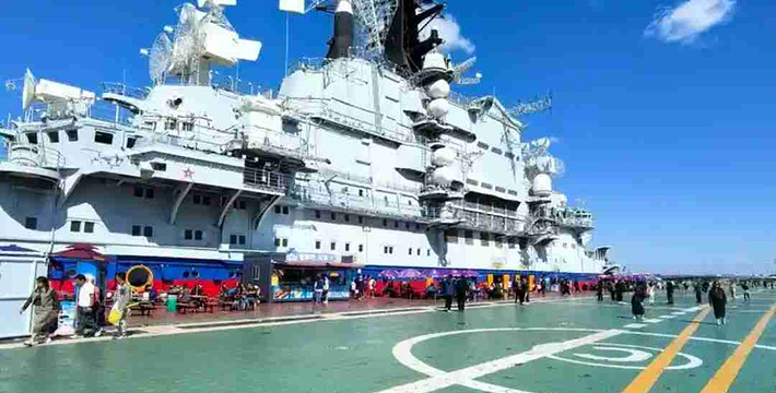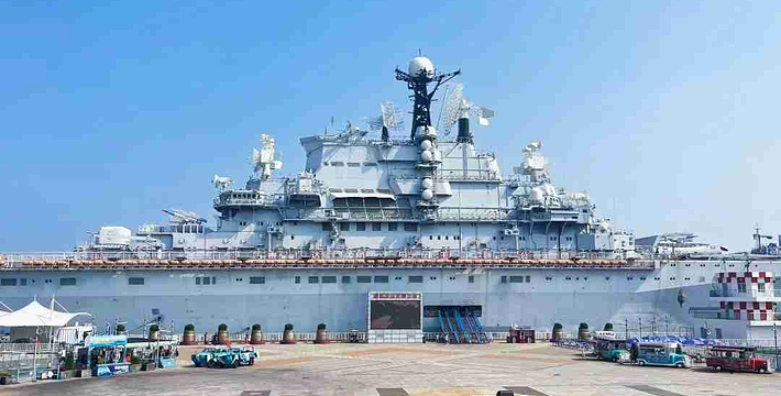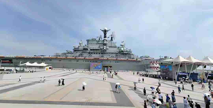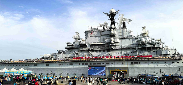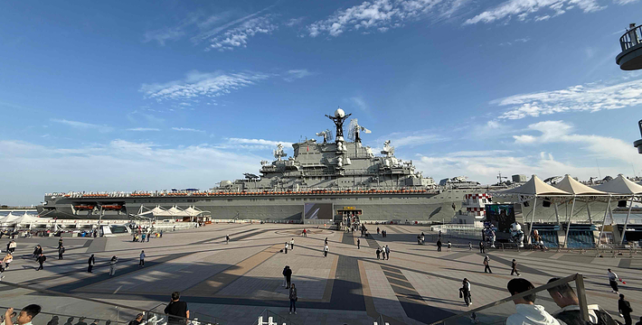 “基辅号”是前苏联建造的一艘航空母舰。全舰的总长度为273.1米,宽处为52.8米,高61米,满载排水量40500吨。1970年建造,1975年服役,1994年从前苏联海军的北方舰队退役,2000年来到中国天津。一度被誉为“水晶理想”、“国家名片”。