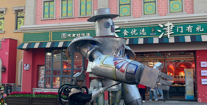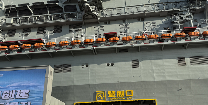泰达航母主题公园是以航母基辅号改造而来,重置了航母的内部设施和作战武备,可以参观了解航母上作战和生活的场景,还有重现航母作战的大型表演。同时,景区建筑和多个表演都以展现俄罗斯风情为主题,盛大精彩。公园紧邻海边,巨大的航母就停靠在广场旁的海面上,园区面积不大,进入景区后步行游玩即可,参观景区和观看表演大约共需半天时间。景区内有多家中西餐厅和几家咖啡厅,可以用餐和休息,但价格也会高于外面,可以自带饮食进入。从位于景区南侧的停车场处进入景区,首先便能看到一片俄罗斯特色的建筑,这里便是俄罗斯风情街。街道大约长一两百米,道路和房屋都颜色鲜艳,街两旁有几家俄式西餐厅、咖啡馆,还有制作和售卖俄罗斯套娃等手工艺品的店铺,幸运的话便能看到套娃的制作过程。在街道的中央是园内的异域风情秀,有来自俄罗斯的各种街头表演,滑稽的小丑互动、搞怪的街舞秀、随性的自弹自唱,无不充满俄罗斯风情,让人觉得仿佛已经置身于异域的童话小镇。风情街的尽头处也是花车巡游的起点,充满俄罗斯风情的街头大型巡游就在此表演,同时还有飞车表演等。步行穿过风情街后便来到景区中央的广场上,在广场的东侧和北侧各有一栋设计独特的建筑,而高大壮观的航母就在东侧的建筑背后,此时也映入眼帘。北侧的建筑是复原后的2010年上海世博会天津馆,一座小洋楼式的建筑反映了天津万国建筑群的建筑风格,馆内有展示天津风貌和历史的陈列及电影。旁边的建筑则是馆内的4D影院,有军事主题的4D电影表演。参观完两座建筑后便来到海滨的航母上,航母内部复原了服役时的场景设施。舰内设有作战指挥中心、情报舱、航母科技馆、舰船发展史、水兵倾斜舱、勇士走廊等几十个项目,内部有照片展示、器物陈列,还有很多武器设施。另外,航母上每天都会举办景区内最 受欢迎的表演-航母风暴,真实再现航母作战时的激烈场面,非常精彩,可以在航母外的看台上观看。同时,航母外的天桥上每天还会进行俄罗斯歌舞表演,华丽浪漫,不能错过。演出及花车巡游的具体时间参见官网:http://www.binhaipark.cn/index.php?case=archive&act=list&catid=18