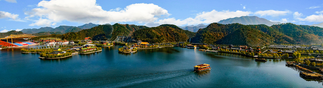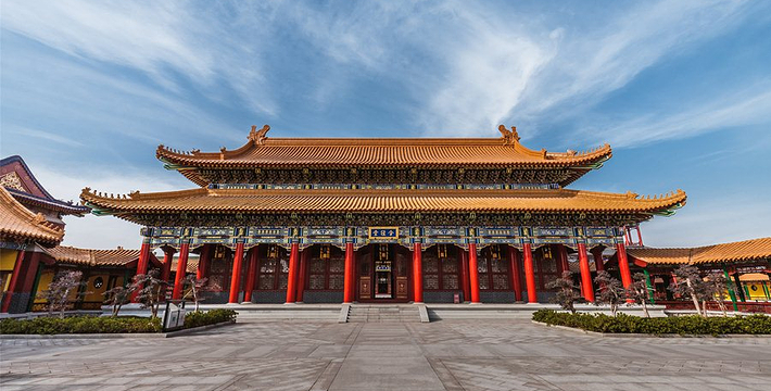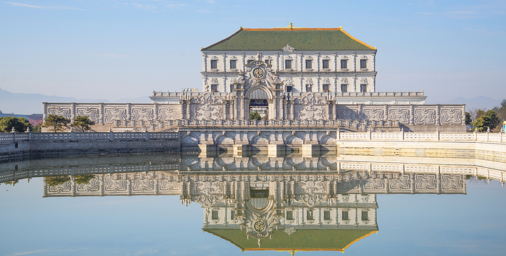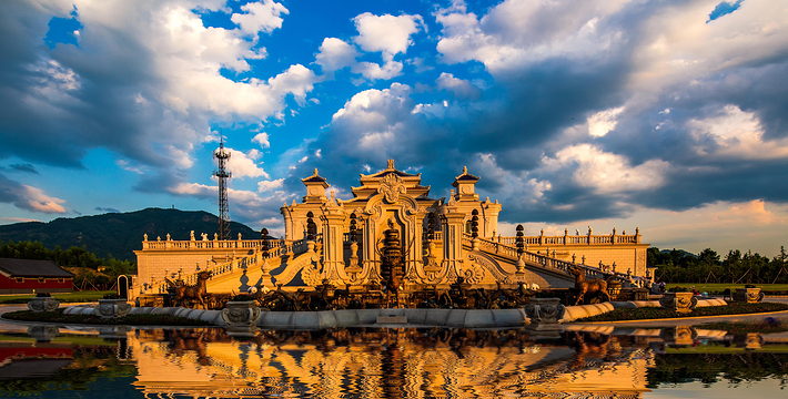 横店圆明新园,融中华文化与世界多元文化于一体的辉煌壮丽的文化乐园,分为新圆明园、新长春园、新绮春园、新畅春园四大园区(又分别称为春苑、夏苑、秋苑、冬苑),以及欢乐夜福海、欢乐夜瑶池、欢乐大世界、动物乐园、冰雪乐园、综合文化展览馆等景区场馆。总占地7000余亩,总投资300亿元。新圆明园(春苑)新圆明园又称春苑,共有45个景园,总占地面积4000余亩(包括自然森林2000亩)。它以《圆明园四十景图》为蓝本,包括皇家建筑、官家建筑、商家建筑和民间建筑,花卉草木与建筑山水自然融合,组成一个以春为主题特色的园林群。