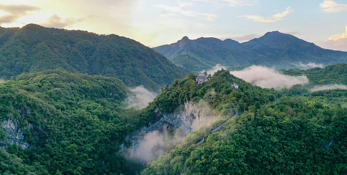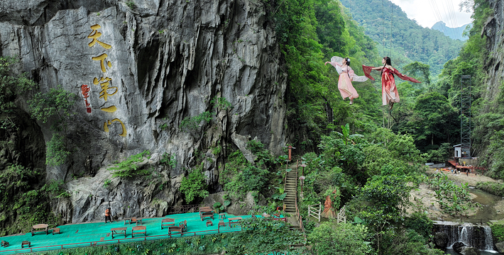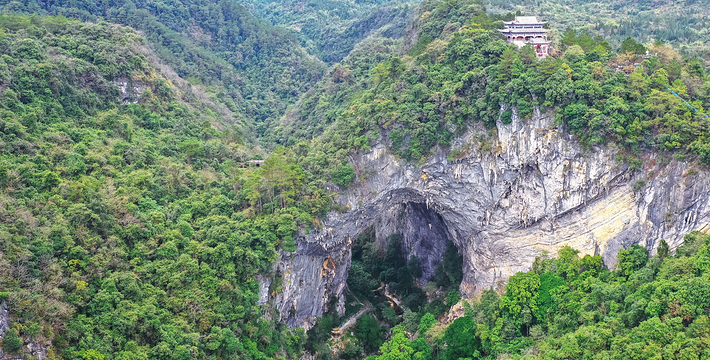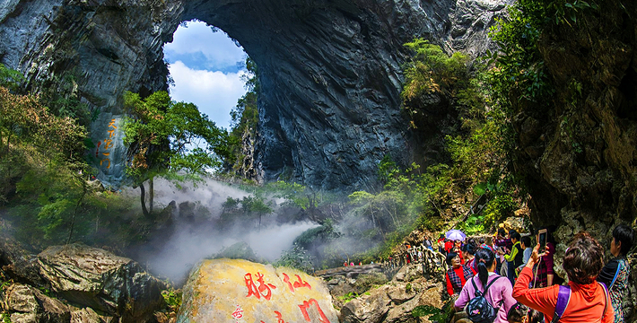 景区内最重要的地文景观是天然仙门,仙门链接峡谷的两边,中间为巨大的天坑高138米,内拱106米,宽53米,长156米,秀、奇、峻、美,令人称绝,因貌状神仙(仙人像)故也称为仙门,门后有十里峡谷,也称为仙人谷,生命之门,生态良好,景色迷人。它们的形成是由于河谷在这里形成一个曲流,随着地壳的抬升,山水从曲流中间穿过,不断冲刷石灰岩坡面,加上地下溶洞洞顶在重力作用下不断崩塌,最终形成了如此奇特的构造。