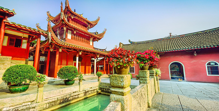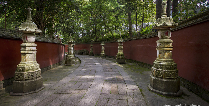 涌泉寺山门保留着唐朝建筑风格,为一有框无门的空门,石门柱上 镌刻着一副短联:“净地何须扫,空门不用关”。此联构思奇巧,意寓双关,令人击掌称奇。