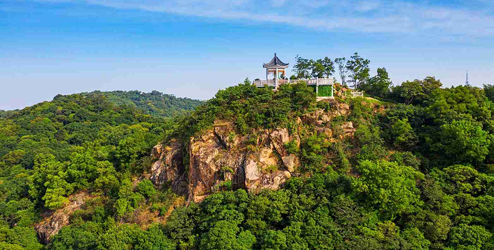 南粤西樵,半山花雨——西樵山风景名胜区,位于广东省南海市西南部,距广州68公里,面积14平方公里。海拔346米,山不高却有72座山峰,挺拔多姿,从山势看,五岭逶迤南下,渐渐百里平川,眼看要消失那“腾细浪”的风貌,西樵山却突然从珠江三角洲拔地鹤立,直耸空庭,奇景深藏,清幽秀丽。其实,这并非西樵山原本的俊俏,而是七八千万年前由海底火山喷发岩浆、岩块、火山灰后形成的死火山,山体外陡内平,状若莲衣复合,大秤峰居群峰之首,九龙岩、冬菇石、燕岩等峰岩态万千。