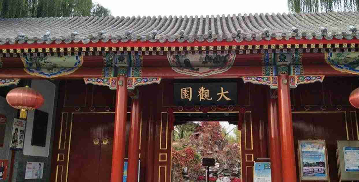 大观园是一座再现中国古典文学名著《红楼梦》中“大观园”景观的仿古园林,位于西城区南菜园(市区北京大观园西南隅护城河畔)。原址为明清两代皇家菜园,明代曾在此设“嘉疏署”。1984年 为拍摄电视剧《红楼梦》,经红学家、古建筑家、园林学家和清史专家共同商讨,按作者在书中的描述,采用中国古典建筑的技法和传统的造园艺术手法建造。园中的园林建筑、山形水系、植物造景、 小品点缀等,均力图忠实于原著的时代风尚和细节描写,《红楼梦》中的大观园是为贾府大小姐元春而建的省亲别墅,因此园中定期举办“元妃省亲”古装表演。