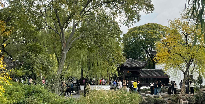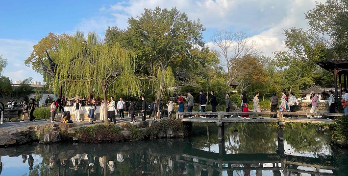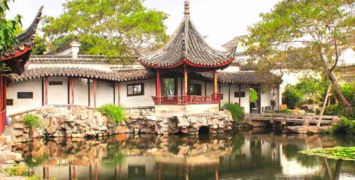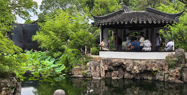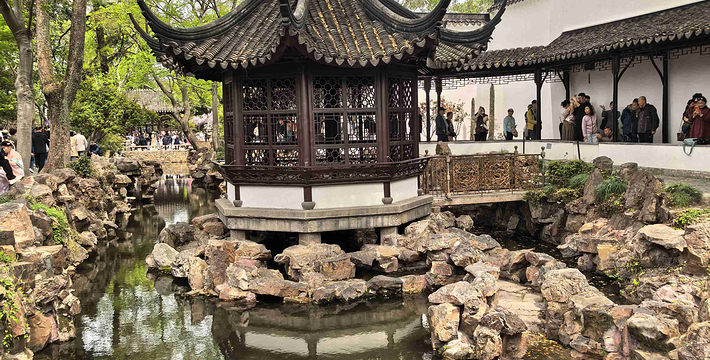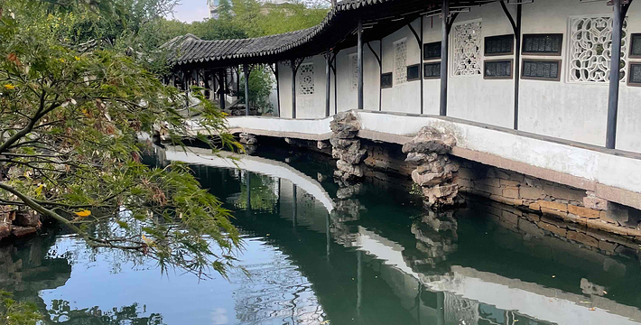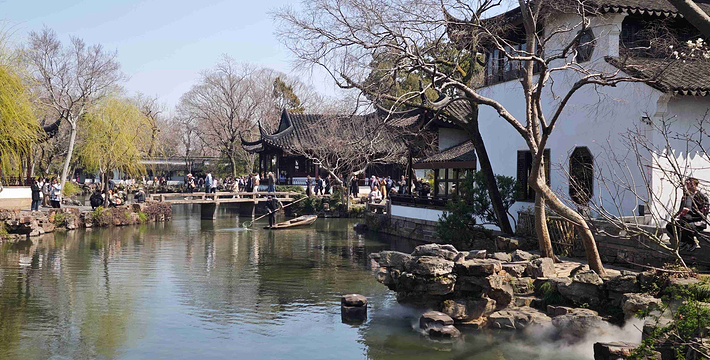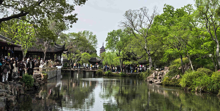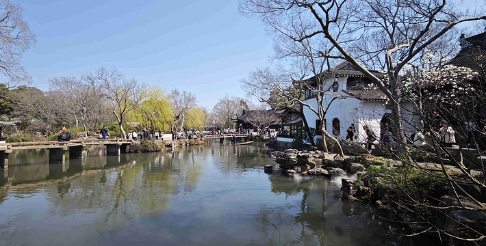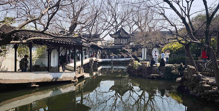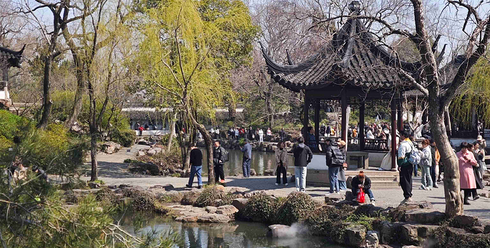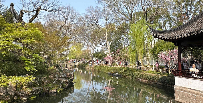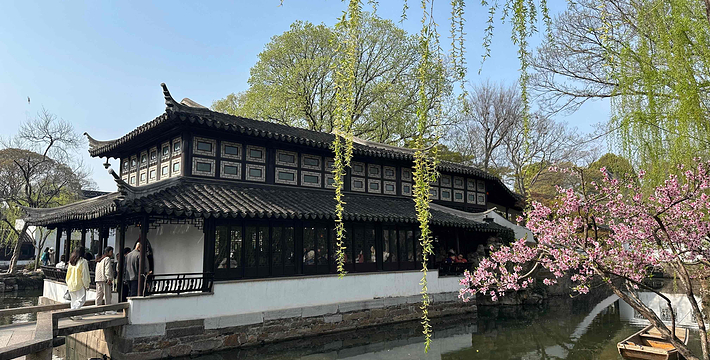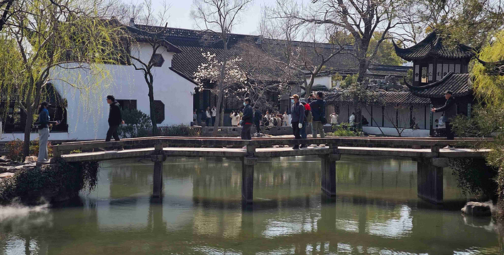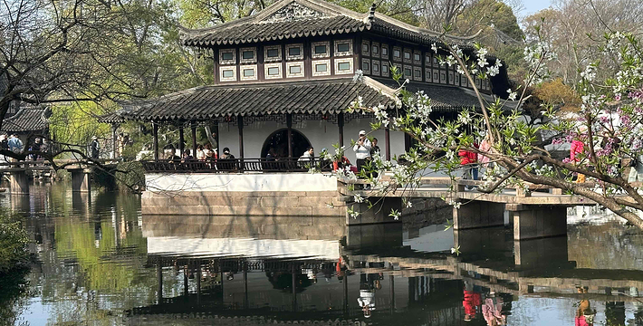 拙政园,中国四大名园之一,坐落于中国著名的历史文化名城的江苏省苏州市平江区,是苏州四大古名园之一,国家5A级旅游景区,全国特殊旅游参观点,被誉为“中国园林之母”,被列入《世界文化遗产名录》,堪称中国私家园林经典。拙政园的建园艺术以水见长,自然典雅,庭院错落,花木为胜。今园辖地面积约八十三点五亩,开放面积约七十三亩,其中园林中部、西部及晚清张之万住宅(今苏州园林博物馆旧馆)为晚清建筑园林遗产,约三十八亩。拙政园是江南园林的代表,全园以水为中心,山水萦绕,厅榭精美,花木繁茂,充满诗情画意,具有浓郁的江南水乡特色。花园分为东、中、西三部分,东花园开阔疏朗,中花园是全园精华所在,西花园建筑精美,各具特色。园南为住宅区,体现典型江南民居多进的格局。园南还建有苏州园林博物馆。