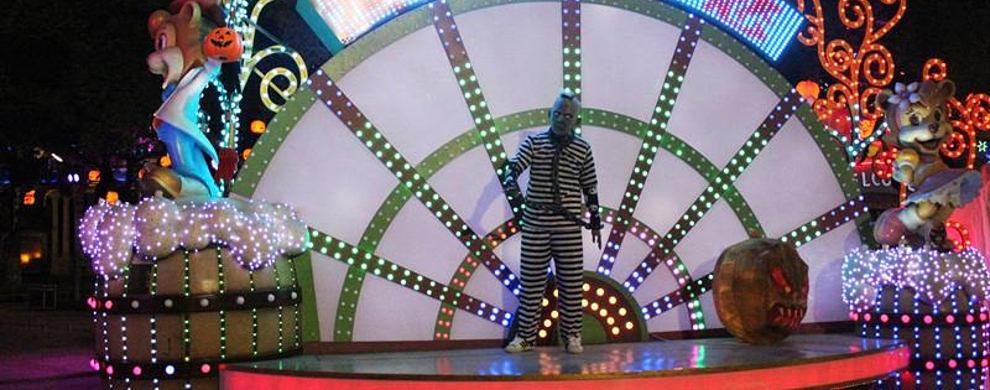 黑白无常、牛头马面,这些异化的鬼魂统统出来巡游。将花车用鬼怪的主题进行包装,演艺人员也装扮成鬼怪的模样,一路巡游与游客互动。