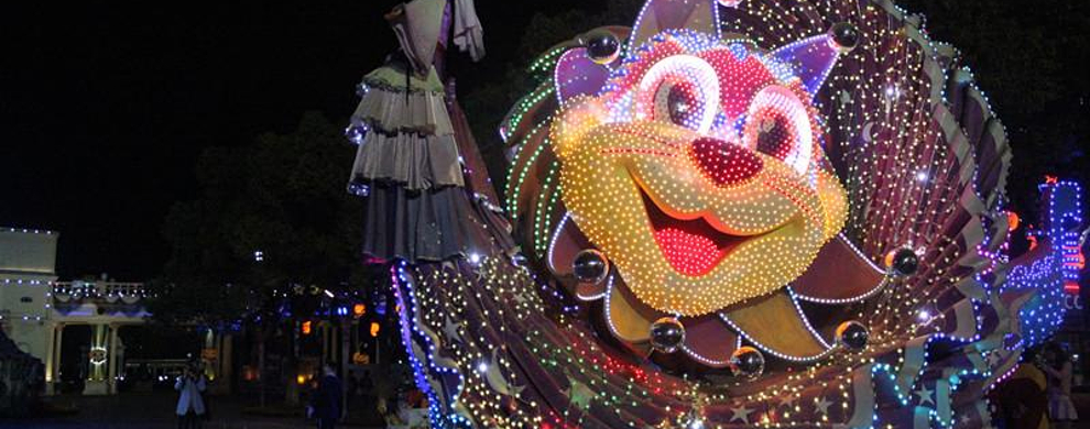 晚上八点到九点之间,欧美城镇灯光全熄(安全灯除外),配合百鬼夜巡,塑造阴森恐怖的氛围,让游客在黑暗的氛围中感受鬼魅的歌舞,别有一番风味。