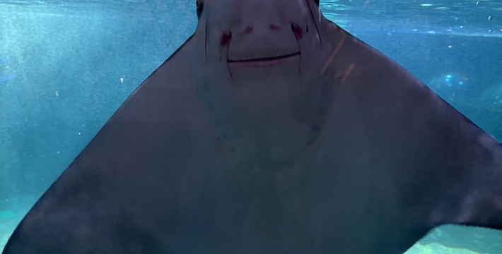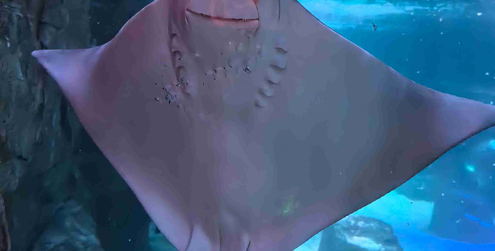 与鳐共舞(Ray Pool)这里您可以欣赏到体态优美的燕子鳐”的豹纹魟等,还有出生刚满百天的白鳍鲨宝宝,它们会在您的身边、甚至在您的头顶“飞”过哦!我们为小朋友们量身订做了“泡泡”缸,只要勇敢地往里探进小脑袋,就能从“飞”一般的角度观赏鳐鱼。