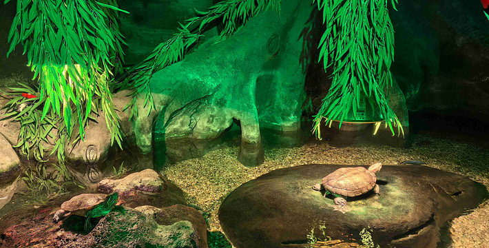 世界热带雨林奇观(Rainforest of the World)随着蔓延的枝蔓往前走,地势向下延伸,眼前出现的是巨大、粗壮的枝杆和盘枝错节、攀悬缠绕的藤蔓,渗着一种强烈的神秘感——这里就是奇幻莫测的热带雨林展区。在这里,您可以身临其地感受湿润的雨林,聆听鸟儿、昆虫的欢快吟唱,同时欣赏各种奇特的水生生物;在这里,我们有独特的喂食表演,您可以看到亚洲小爪水獭萌态百出的“用餐”过程;在这里,您还有机会目睹巨骨舌鱼跃出水面捕食的震撼场面。