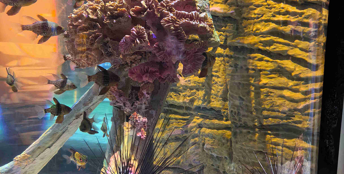 缤纷珊瑚带(Coral Reef) 珊瑚礁被称为海洋的热带雨林,是世界上多元化的栖息地之一。我们通过模拟珊瑚礁生态场景,还原真实的缤纷珊瑚带。色彩斑斓的珊瑚带及充满童趣的互动“泡泡”缸带给你前所未有的体验。生活在珊瑚礁周围的各种各样的珊瑚礁鱼,体态万千,色彩鲜艳,有的栖息在珊瑚的分枝间或礁洞里,有的在珊瑚礁上巡游,有的则潜伏于底质里,活泼可爱的就像从动画片里跳出来一样。