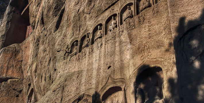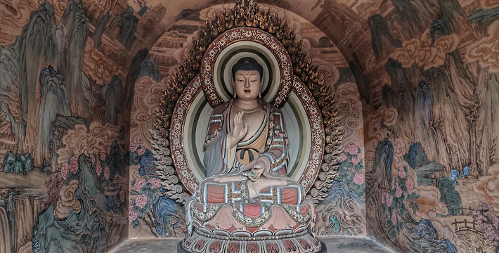 在山西太原市西南40公里天龙山腰。天龙山亦名方山,海拔高1700米。这里风光秀丽,历史上曾是北齐皇帝高洋之父高欢的避暑宫。四周山峦起伏,遍山松柏葱郁,山头龙王石洞泉水荡漾,山前溪涧清流潺潺。天龙山石窟创建于东魏(公元534―550年),高欢在天龙山开凿石窟,高欢之子高洋建立北齐的晋阳为别都,继续在天龙山开凿石窟。隋代杨广为晋王,继续开凿石窟,唐代李渊父子起家于晋阳,建造石窟达到高峰。