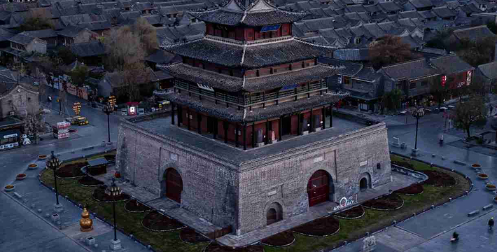 其主体结构建于1374年(明洪武七年),是一座由宋元向明清过渡的代表建筑。它在形式上承袭了宋元楼阁遗制,在结构上继承了唐宋传统。光岳楼由楼基和主楼两部分组成,总高33米。楼基为砖石砌成的方形高台,占地面积1236平方米,边长34.5米,向上渐有收分,垂直高度9米,由交叉相通的4个半圆拱门和直通主楼的50多级台阶组成。