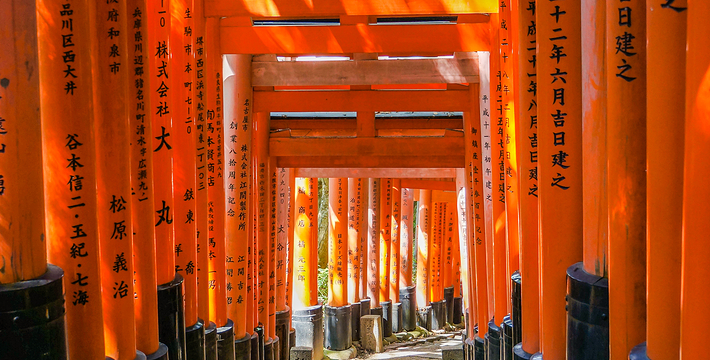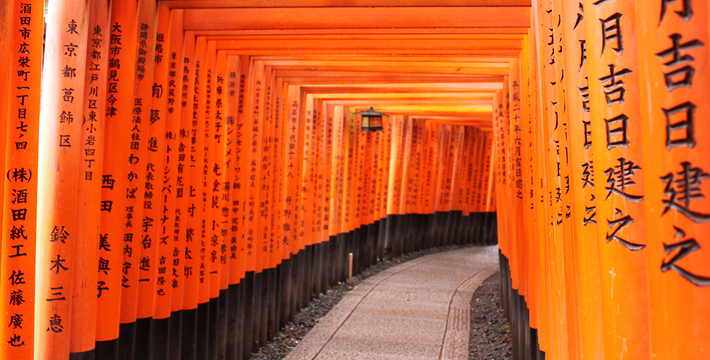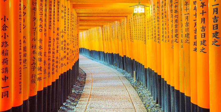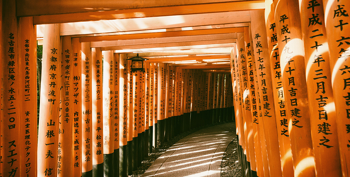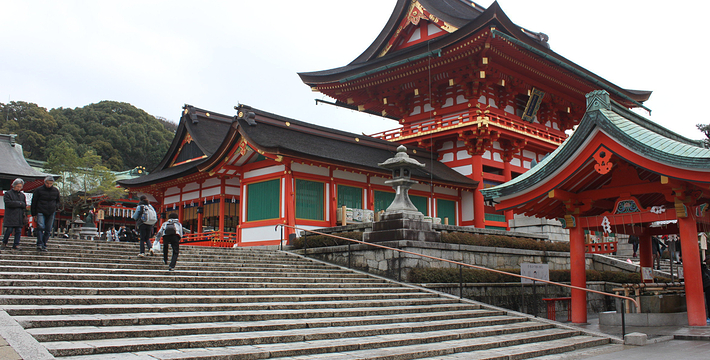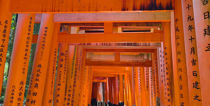 伏见稻荷大社建于8世纪的这座神社,在供奉稻荷--神米、日本米酒和昌盛繁荣之神的9000。商人来到神的面前祈求成*和财富。在巨大的红色牌坊之后,神社的侧面立有石狐狸(狐狸是稻荷在地球上的代表),从这里你开始向上攀登。整个山坡都覆盖着数不清的红色牌坊,它们一个连一个形成了无尽头的隧道。你走在奇特的红色微光里,那微光在位于山岩上的小神社里时隐时现。地址:京都南部,在稻荷站。常年开放,免费入内。