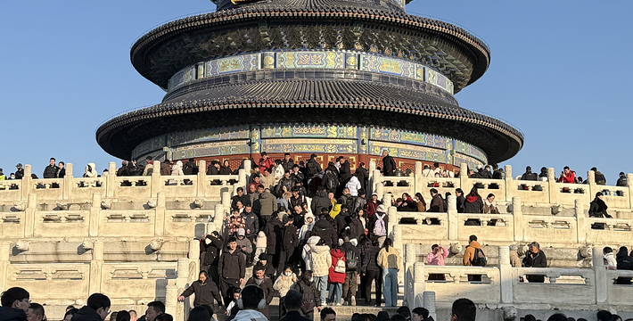 圜丘坛又称祭天坛,是皇帝冬至日祭天大典的场所。站在天坛中心的天心石高喊,回音四起,颇有一呼百应之势。
