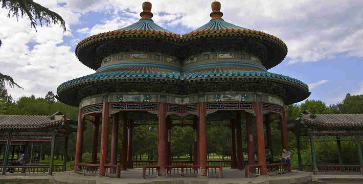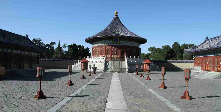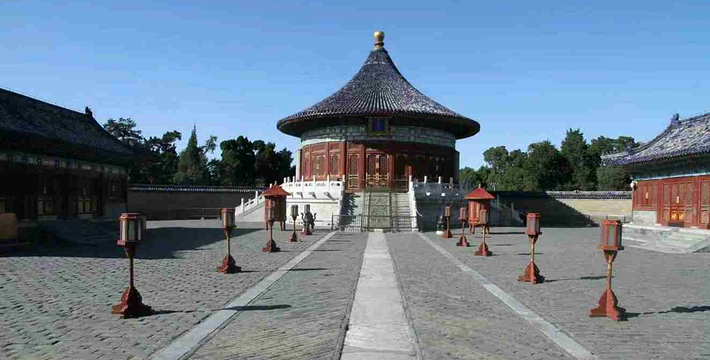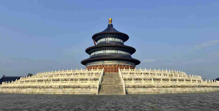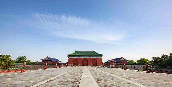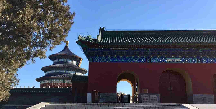 天坛公园位于北京市南部,东城区永定门内大街东侧,占地约270万平方米。在整个北京城里,北有地坛祭地,南有天坛祭天,东有日坛祭太阳,西有月坛祭月亮、气宇非凡。天坛始建于明永乐十八年(1420年),清乾隆、光绪时曾重修改建。为明、清两代帝王祭祀皇天、祈五谷丰登之场所。天坛是圜丘、祈谷两坛的总称,有坛墙两重,形成内外坛,坛墙南方北圆,象征天圆地方。主要建筑在内坛,圜丘坛在南、祈谷坛在北,二坛同在一条南北轴线上,中间有墙相隔。圜丘坛内主要建筑有圜丘坛、皇穹宇等等,祈谷坛内主要建筑有祈年殿、皇乾殿、祈年门等。天坛有垣墙两重,分为内坛、外坛两部分。主要建筑集中于内坛。天坛主要建筑在内坛的南北中轴线上,圜丘坛在南,祭天,有圜丘、皇穹宇等;祈谷坛在北,祈谷,有祈年殿、皇乾殿、祈年门等,中间有墙相隔。两坛由一座长360米、宽近30米、南低北高的丹陛桥(也称海墁大道或神道)相连。丹陛桥两侧为大面积古柏林。内坛西墙内有斋宫,是祀前皇帝斋戒的居所。外坛西墙内有神乐署、牺牲所等。