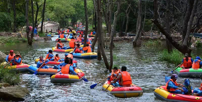 沿着招虎山百合峡谷蜿蜒流动的河水,乘着橡皮艇顺流而下,四面青山环绕,漂流于丛林其间,迎面而来的将是一种期待--期待刺激!