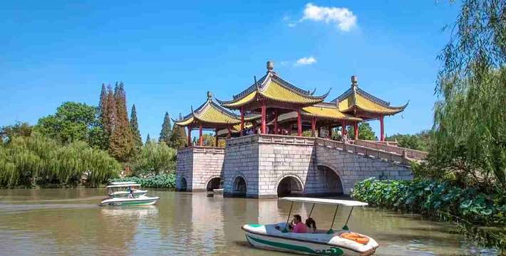 (3)苏州出发:沿馨泓路行驶进入干将西路,右转进入西环路,朝沪宁高速方向稍向右转,在来凤桥从入口进入西环高架路,沿沪宁高速苏州西互通方向进入G42,右转进入G2,从扬州(东)出口离开,在沙湾路桥右转进入沙湾中路,左转进入文昌东路,继续行驶,进入盐阜西路行驶230米,到达景区。