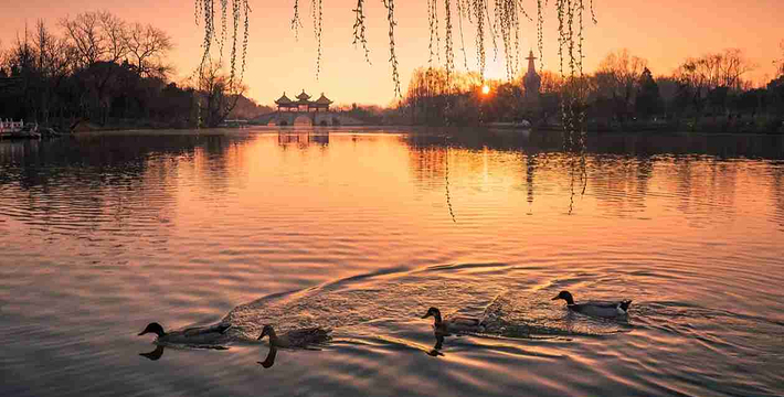 瘦西湖——烟花三月是折不断的柳,思念总比那西湖瘦,小家碧玉的灵动秀丽,船游其间自在怡然。瘦西湖位于扬州市北郊,现有游览区面积100公顷左右。瘦西湖为我国湖上园林的代表,融古典园林南秀北雄于一体,组合巧妙,构成了一个以湖为主,景外有景,园中有园的艺术境界。瘦西湖清瘦狭长,原是纵横交错的河流,历次经营沟通,运用我国造园艺术的特点,因地制宜地建造了很多风景建筑。瘦西湖从乾隆御码头开始,沿湖过冶春、绿杨村、红园、西园曲水,经大虹桥、长堤春柳,至徐园、小金山、钓鱼台、莲性寺、白塔、凫庄、五亭桥等,再向北至蜀岗平山堂、观音山止,既有天然景色,又有扬州独特风格的园林。