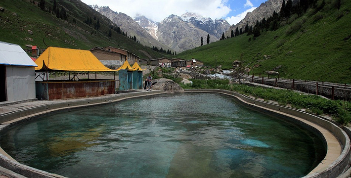 北临藏登乌鲁山,东依艾肯达坂,南靠胡丛闹尔增达扳,西邻札克柏尔克山沟,海拔2604米。温泉距巩斯乡政府28公里,有便道相通。阿尔先沟长30公里,宽0.06公里,温泉群在阿尔先沟中间地段,离沟口25公里。分布了12个温泉。温泉水是地表水浸入地壳板块裂隙,经地心加热后溢出的。群山抱秀水,怪石弄温泉。“阿尔先”蒙古语意为“圣水”,阿尔先温泉分布广、泉孔多、水温高、水质甘甜、含有多种矿物质和微量元素,以医用保健疗效高而闻名新疆。由于流程和裂隙的深浅不同,水在流程中溶入的矿物质、气体和放射性元素也各不相同。按国家医用矿泉水分类标准鉴定,阿尔先12个温泉的水,矿化度均底于1毫克/升,属于淡矿水。除克屯才杜、托拉戈、奥来根三个温泉水温底于25℃外,其余9个泉的水温均在43℃—70℃之间,并含有不同量的放射性元素氡,具有多*能的医疗作用。如去毒泉、去关节病泉、生肌健骨泉、降温泉、点滴冰泉等。其中才松阿尔先泉水,可作矿泉水饮用,有利胆、醒酒、健胃的*能。每到春暖花开之际,来阿尔先沟温泉淋浴治病者络绎不绝。阿尔先沟水秀山青,鸟语花香。温泉附近的高山瀑布,海拔3400米,冰川消融水从30米高的峭壁上端飞流而下,飞花溅玉,云雾蒸腾,颇为壮观。坡谷中云杉挺立,高山草甸平铺,生长着党参、贝母、冬虫夏草等名贵药材。附近的断崖上,有许多宗教岩画,以相传温泉守护神——“香宁神”。阿尔先沟两旁松杉密布,翠谷鸟鸣,平均气温13℃29.5℃,是避暑、疗养、药浴的理想地。