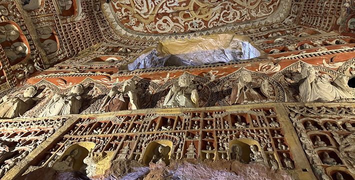 中期石窟则以精雕细琢,装饰华丽著称于世,显示出复杂多变、富丽堂皇的北魏时期艺术风格。