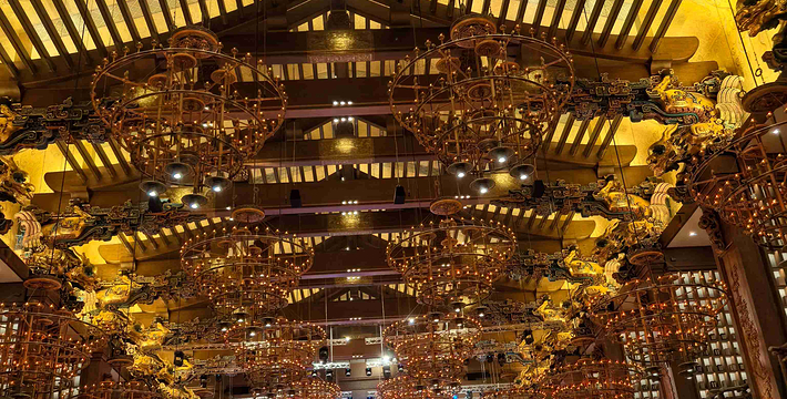 走过七十二贤厅,就来到大学堂核心空间“仁、义、礼、智、信”五厅。这是一个面积达到三千平米巨形的“课堂”,空间设计成为一个儒文化的图书馆:四周高大的书架一直延伸到屋顶,放满了儒家经典的古籍,中央是一列列的书案,可容纳上千人聚于一堂听课、抄经典、举行仪式。