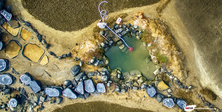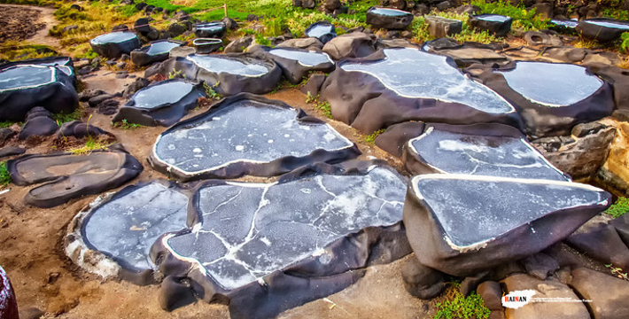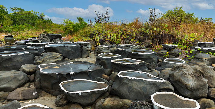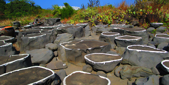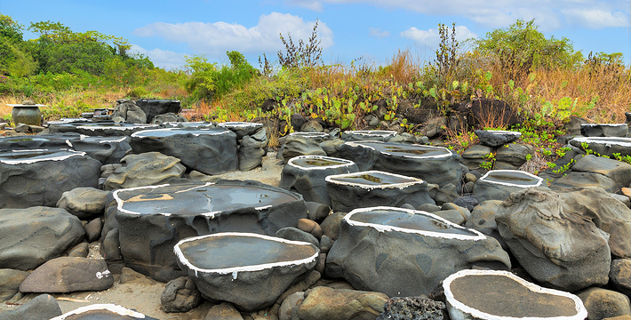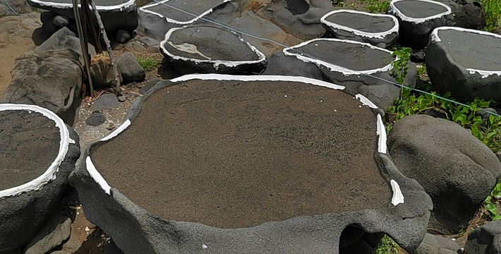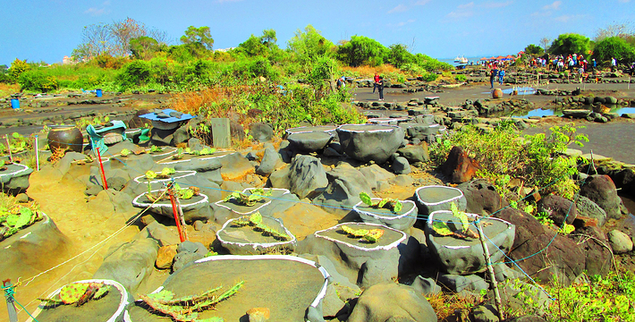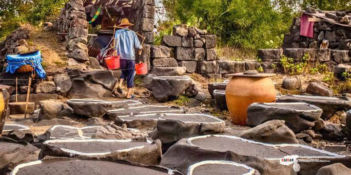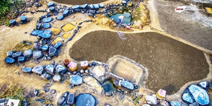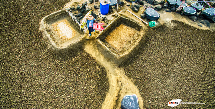海南千年古盐田位于海南洋浦半岛盐田村的千年古盐田,近日被辟为旅游景点。这片古盐田有750亩,距今已有1200多年历史,传说是从福建莆田迁移而来的盐工所造。盐工们根据海南岛高温烈日的特点,改变过去“煮海为盐”的方法,用经过太阳晒干的海滩泥沙浇上海水过滤,制成含高盐分的卤水,再将卤水倒在石槽内,经暴晒制作成盐巴。由于这里的盐味鲜,并对多种疾病有疗效,清朝乾隆皇帝闻报后,御书“正德”赐给盐田人,至今保留完好的原始民间制盐工序的古盐场。目前有1000多个形态各异的砚式石盐槽密布海滩。现在盐田村仍有30多户盐工,每天都在这片盐田上沿袭着1200多年来的古老方式劳作。