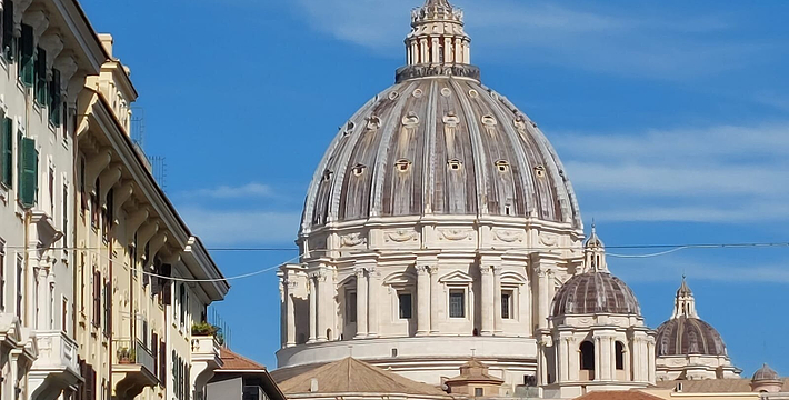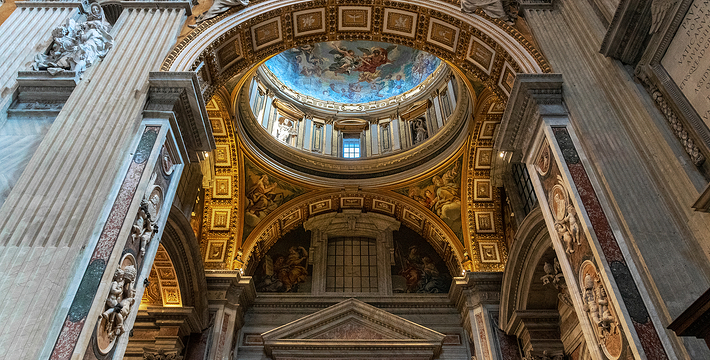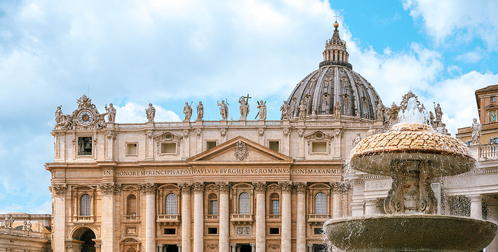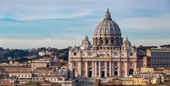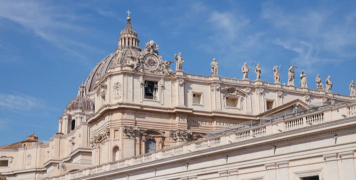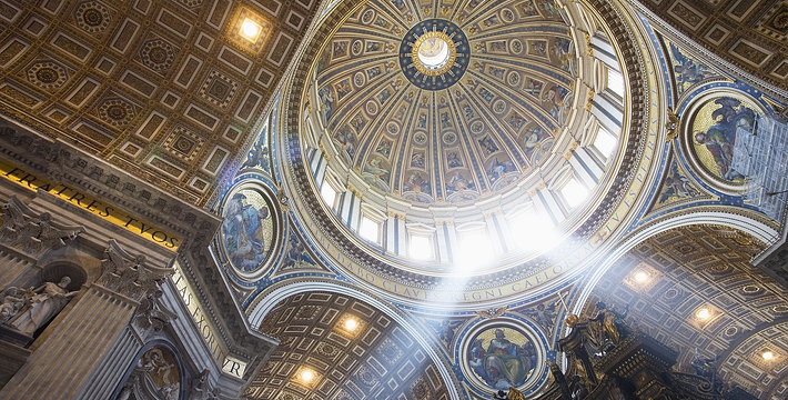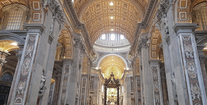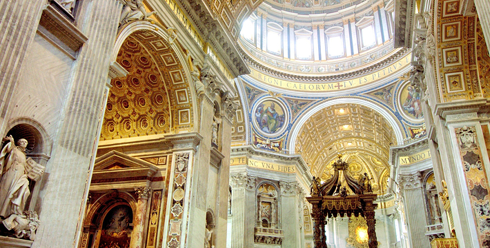 罗马天主教的中心教堂,欧洲天主教徒的朝圣地与梵蒂冈罗马教皇的教廷。位于意大利首都罗马西北的梵蒂冈。於西元326年落成。16世纪,教皇朱利奥二世决定重建圣彼得天独厚教堂,并於是1506年破土动工。在长达120年的重建过程中、米开朗琪罗、德拉•波尔塔和卡洛•马泰尔相继主持过设计和施工,直到1626年11 月18日才正式宣告落成。圣彼得大教堂是一座长方形的教堂,整栋建筑呈现出一个十字架的结构,造型是非常传统而神圣的。324年,原始的构想只是一座小会堂,建於圣彼得墓穴的正上方,在十五世纪时开始改建,终於在1626年完成了现在的模样。圣彼得教堂不仅是一座富丽堂皇值得参观的建筑圣殿,它所拥有多达百件的艺术瑰宝,更被视为无价的资产。