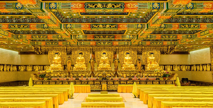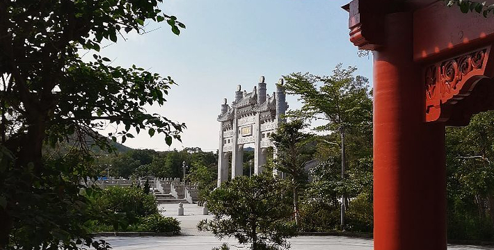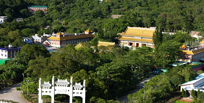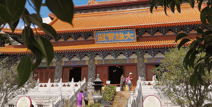 宝莲禅寺创建于1924年,虽仅70余年,但因建筑规模之大,地形环境的优美,有「南天佛国」之称,被推选为香港四大禅林之首。宝莲禅寺前有一广场,广场之中建有一个仿北京天坛圜丘的三层小坛,对面山上的天坛大佛做陪衬。寺前有一座三间四柱三楼的冲天柱式石牌楼。牌楼正中匾额横刻「宝莲禅寺」四字。过牌坊之后,有一林荫通道通向寺门,寺门的形式甚有特点,其下部为一高大石台,台下辟三道券门洞。石台四周有栏杆围绕,台子正中建单檐歇山顶三间大殿,华丽壮观。宝莲禅寺前之左方有一高达数十米的山峰,形似僧人敲击之木鱼,故名为「木鱼山」。进得山来,从右侧望去,只见一座高大的佛像,为释迦牟尼佛像,象征北京天坛的三层基座之内,设有展览厅,布置了各类佛教艺术品和壁画、书画等陈列。佛像从筹划到1995年完成,历经6年,现已和宝莲禅寺一起成为香港一处著名的游览胜地。