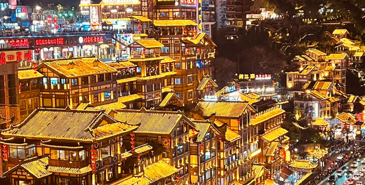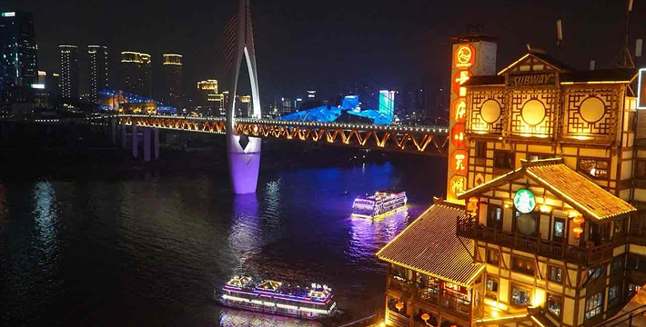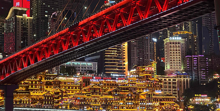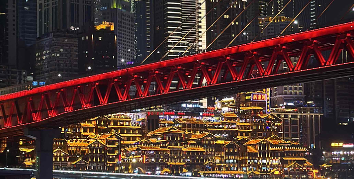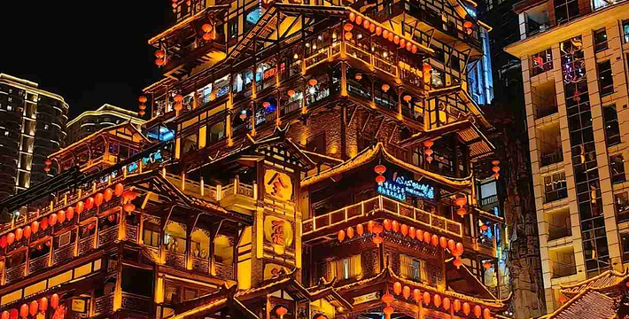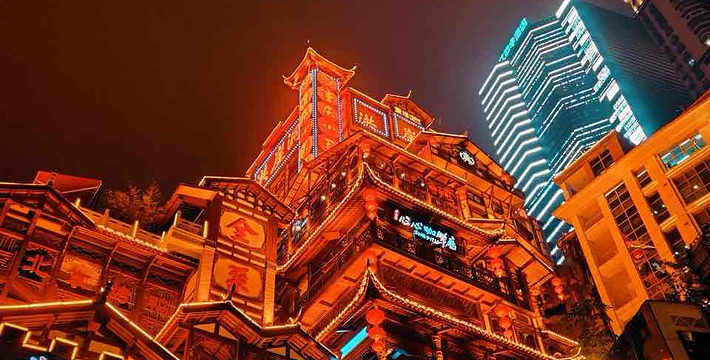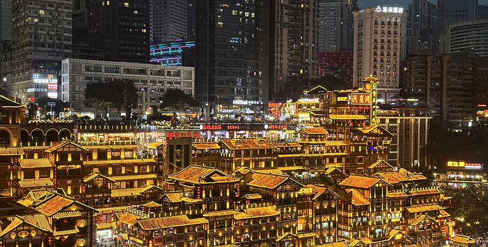 洪崖洞民俗风貌区作为国家 级AAAA旅游风景区,是小天鹅集团投资修建的目前市中心唯 一一片展现巴渝传统民俗风貌区域。他与朝天门广场、解放碑商务区形共同形成了重庆最市民及游客追捧的游览胜地。“洪崖洞”用创新的思维把古老的巴渝吊脚楼建筑艺术注入全新的文化理念之中;与江景和城市风貌完美融合,以75米高的超常落差,顺崖而上,高低错落、依山而建。它浓缩了重庆三千年历史沉淀,融重庆独特的巴渝民俗文化、山地民居的建筑文化、码头文化于一体,成为倍受世界瞩目的,独特靓丽的城市名片。如今,热度持续升温的洪崖洞民俗风貌区,以其独特的人文内涵和璀璨的建筑特色,已然成为人流量仅次于故宫,国内外游客争相打卡、驻足、游览的重庆地标性景区。每一天,洪崖洞以其独特的魅力和不可复制的特色,吸引着来自全球各地的游客前来观光游览。