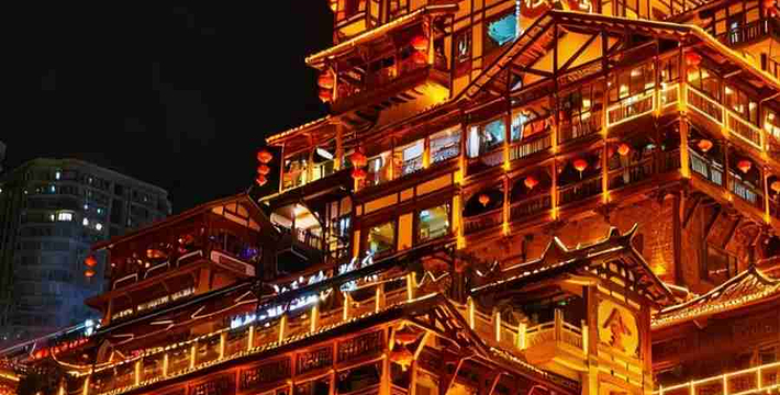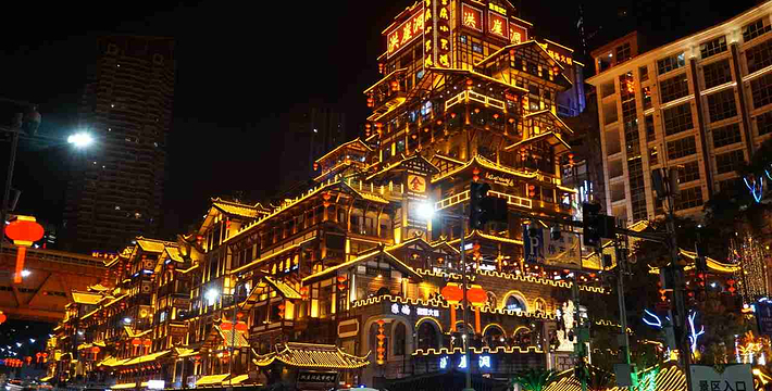 紧邻解放碑,交通非常便利。可乘坐248、604支线、609、868(A线)路直接抵达;也可乘坐103(区间)、104、111、151、215、224、261、265、471、704、862路,先到沧白路(小什字)下车,步行去洪崖洞,不超过500米;再或者,选择嘉陵江索道,1.5元即到。夜晚有通宵800(B线)、通宵9833。