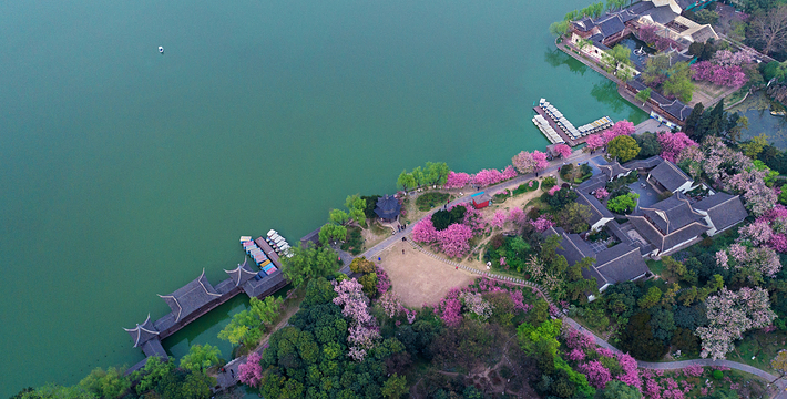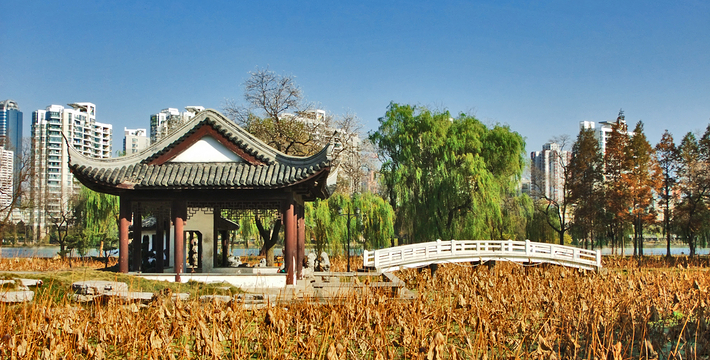 位于南京城西水西门外 。公园里林木郁葱,湖畔亭、堂、厅、楼错列。相传莫愁是南朝时齐国(479一502)洛阳一美少女,家贫卖身葬父,远嫁金陵,不容于舅姑,投湖自尽。因此得名莫愁湖。事实上,六朝时这里还是大江的一部分。唐时叫横塘,北宋乐史著《太平衰字记》中才有莫愁湖的名字。1929年辟为公园。1953年开始大加修葺,并在郁金堂西重雕莫愁女像。 胜棋楼 在莫愁湖公园内。始建于明洪武初年,重修于清同治十年(1871)。相传这里是明太祖朱元璋与大将徐达弈棋的地方。有一次徐达站立起身,对皇帝说:”陛下,这局棋已经和了。”朱元璋求胜心切,不愿和局,徐达躬身行礼说,“请陛下到这边来,细看臣的棋势。”朱元璋走过去一看, 不觉又惊又喜。原来徐达用的黑子在棋盘上摆成了“万岁”二字。朱元漳这才明白,自己不是徐达的对手,于是便把莫愁湖送给了徐达,此楼被称为“胜棋楼”。湖畔有“粤军殉难烈士墓”和孙中山先生手书“建国成仁”碑 。