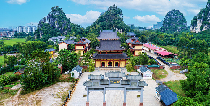 南山寺于南山上,始修于宋朝,宋太宗赐御书,宋仁宗题“景佑禅寺”额匾。元文宗即位前两次住寺,题“南山寺”,称南宗正脉,是西江重要佛寺。“山明水秀本从来,云水光中计四峰”。寺依山踞洞而建,门外有菩提树,寺内曲径通幽,有宋、元、明、清石刻百余方和北宋天圣三年(1025年)大铁钟等历史文物。洞内钟乳石丰富多姿,有飞来佛、石狮、石象、石鲤等,另有晋代葛洪炼丹遗址和流米洞遗迹。南山寺历代为旅游胜地,今寺内石刻与宋代铁钟为自治区重点文物保护单位。
