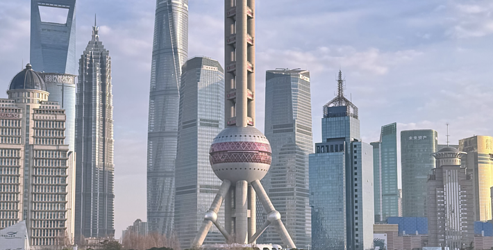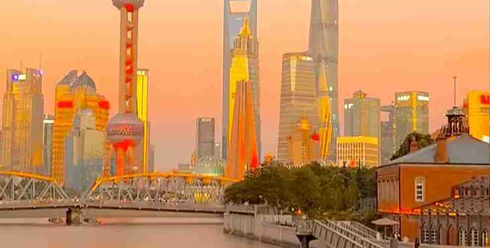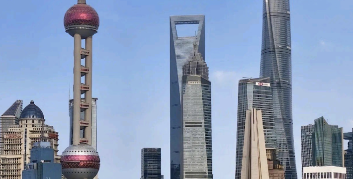 世界的高度:东方明珠塔高468米,位居亚洲第一、世界第三。左右两侧和南浦大桥、杨浦大桥一起,形成双龙戏珠之势,成为上海改革开放的象征。