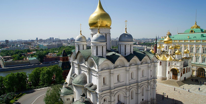克里姆林宫(Kremlin)在莫斯科市中心,濒莫斯科河,曾为莫斯科公国和18世纪以前的沙皇皇宫。“十月革命”胜利后,成为苏联党政领导机关所在地。始建于1156年,初为木墙,后屡经扩建,至19世纪40年代建大克里姆林宫,为一古老建筑群,主要有大克里姆林宫、多宫、圣母九天教堂、参议院大厦、伊凡大帝钟楼等、 尼古拉、特罗伊茨克、保罗维茨、沃多夫兹沃德等塔楼,1937年,在塔楼上装置五角红宝石星。