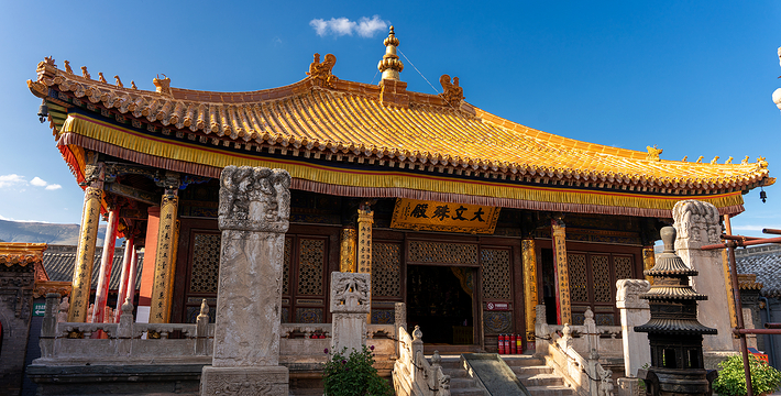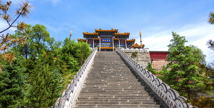 五台山位于山西省东北部,忻州市五台县和繁峙县之间,西南距省会太原市230公里。与浙江普陀山、安徽九华山、四川峨眉山、共称“中国佛教四大名山”。列中国十大避暑名山之首。与尼泊尔蓝毗尼花园、印度鹿野苑、菩提伽耶、拘尸那迦并称为世界五大佛教圣地,或者世界五大佛教名山。2009年被联合国教科文组织以文化景观列入世界遗产名录。因五峰如五根擎天巨柱拔地而起、巍然矗立、峰顶平坦如台,故名五台。又因山上气候多寒,盛夏仍不见炎暑,故又别称清凉山。五台山属太行山系的北端,跨忻州市繁峙县、代县、原平市、定襄县、五台县,周五百余里。中心地区台怀镇,距五台县城78公里、繁峙县砂河镇48公里、忻州市150公里、山西省会太原市240公里。在北纬38°50'—39°05'、东经113°29'—113°44'之间,由一系列大山和群峰组成。其中五座高峰,山势雄伟,连绵环抱,方圆达250公里,总面积592.88平方公里。由古老结晶岩构成,北部切割深峻,五峰耸立,峰顶平坦如台,故称五台︰东台望海峰、西台挂月峰、南台锦绣峰、北台叶斗峰、中台翠岩峰。五峰之外称台外,五峰之内称台内,台内以台怀镇为中心,北台顶海拔3061.1米,有“华北屋脊”之称。五台山自然植被以草地为主,由草甸、草原、灌丛构成,是优良的夏季牧场。五台山是文殊菩萨的道场,与浙江普陀山、安徽九华山和四川峨眉山并称为四大佛教名山,并以其悠久的历史文化和规模宏大的寺庙建筑群位居四大佛教名山之首。自东汉永平(58年~75年)年间起,历代修造的寺庙鳞次栉比,佛塔摩天,殿宇巍峨,金碧辉煌,是中国历代建筑荟萃之地。雕塑、石刻、壁画、书法遍及各寺,均具有很高的艺术价值。唐代全盛时期,五台山共有寺庙300馀座,经历几次变迁,寺庙建筑遭到破坏。目前台内外尚有寺庙47座。历史上,印度、尼泊尔、朝鲜、日本、蒙古、斯里兰卡等国的佛教信徒,来此朝圣求法的甚多。