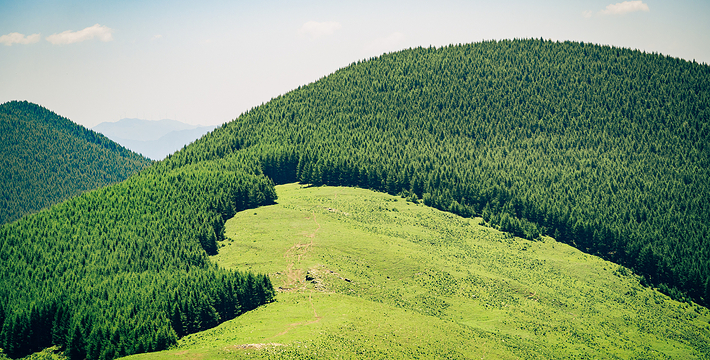 五台山方圆约320公里,因五峰如五根擎天巨柱拔地而起、 巍然矗立,峰顶平坦如台,故名五台。