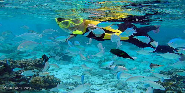 海域的水质为一类,各种海洋生物有600多种。海底有美丽丰富的珊瑚族群和热带鱼,还有古朴的木质建筑,并且还有浓郁的休闲气息,区内设有水肺潜水、海底漫步、夜潜、观光船、半潜艇、拖曳伞、深海垂钓、水下摄像及沙滩休闲等各类海洋娱乐活动。