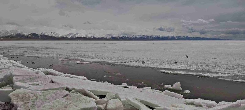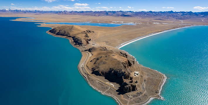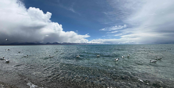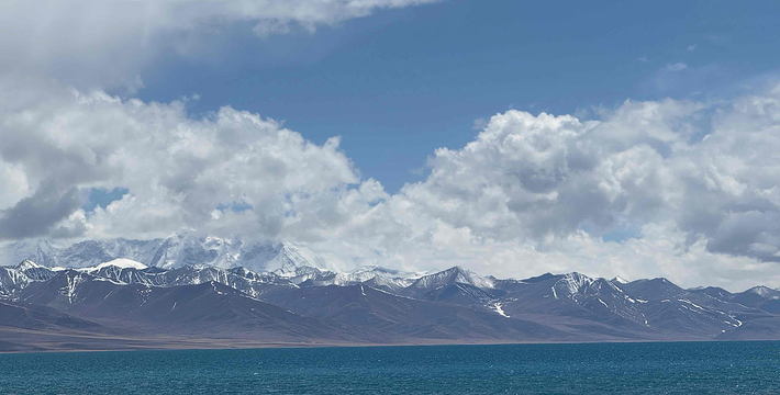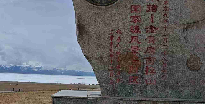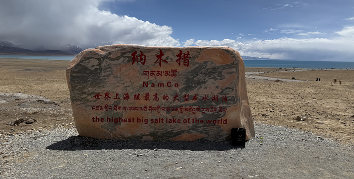 纳木措湖位于拉萨西北约两百公里处(当雄县和那曲地区班戈县之间),海拔四千七百余米,湖面面积为一千九百四十平方公里,是西藏湖泊之冠。“纳木措”意为天湖、灵湖或神湖,是藏传佛教的著名圣地,信徒们尊其为四大威猛湖之一,传为密宗本尊胜乐金刚的道场。它的东南部是直插云宵,终年积雪的念青唐古拉山的主峰,北侧倚偎着和缓连绵的高原丘陵,广阔的草原绕湖四周,天湖象一面巨大宝镜,镶嵌在藏北的草原上。清晨,湖面霭霭茫茫,周围群山若隐若现,太阳升起,云消雾散,清风拂面,浩瀚无际的湖面荡起涟漪,真似慈祥的仙女,手挥素巾注视头着来人,这时的念青唐古拉山的主峰格外清淅,牧场一片浅绿,山体红黑间杂,峰顶白雪皑皑,主峰如一个威武战士守护着纳木湖。高原气候瞬息万变,时而狂风大作,时面乌云盖天,风雪过后,湖面依然波光粼粼。傍晚,湖水被夕阳的余浑照得霞光闪烁,真是迷人。蒙语和满语称“腾格里诺尔”,藏语纳木湖意为天湖。位于拉萨以北当雄县和那曲地区班戈县之间。之间,在念青唐古拉山主峰以北,距离拉萨240公里(在20世纪70年代以前为我国第三大咸水湖,自从罗布泊干涸后成为我国第二大咸水湖),世界海拔第二高的咸水湖。湖泊形成和发育受地质构造控制,是第三极喜马拉雅运动凹陷而成,为断陷构造湖,并具冰川作用的痕迹。湖水在不断退缩,至今湖周围留有数道古湖岸线80米。纳木措南面有终年积雪的念青唐古拉山,北侧和西侧有高原丘陵,广阔的湖滨,草原绕湖四周,水草丰美。湖水含盐量高,流域范围内野生动物资源丰富,有野牛、山羊等。湖中多野禽,产细鳞鱼和无鳞鱼。湖水清澈,与四周雪山相映,风景秀丽。