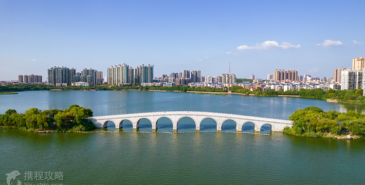 古称邕湖,位于市区南郊。水面1200公顷,环湖60多公里。南湖多湾多汊,港湾曲折幽深,湖水清澈明净,湖内小岛峙立,湖岸群峦起伏。南岸有一山,形如巨龙,名叫龙山,为省级自然风景保护区和旅游度假区。每年岳阳汨罗江国际龙舟节即在此举行,游人泛舟湖上,可饱览无边风月。附近建有中心酒店和度假村,设有各种游船。