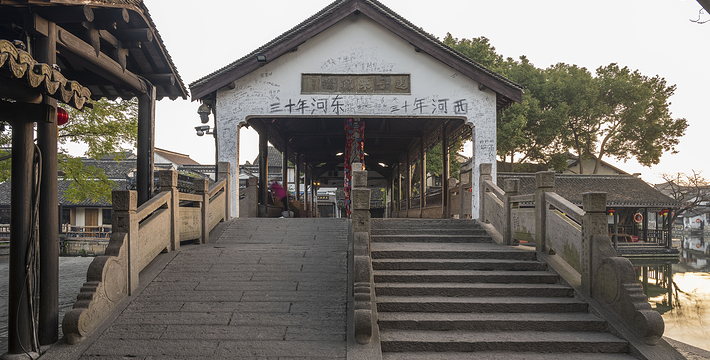 西街:西塘东西走向的主要街道,分上下两段,东为上,西为下,所以有上西街和下西街之分。西街有着水乡极为典型的街道格局,即一根扁担的宽度。