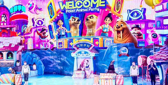 极地世界场馆:横跨南北两极情景,极地动物大联盟,欢乐无限冰雪王国。馆内有白鲸、北极狼、北极狐、南极企鹅、斑海豹等多种极地珍稀海洋动物,以及《白鲸传奇》和《海狮嗨秀》两大精彩演艺,让游客尽享“极地”欢乐之旅。