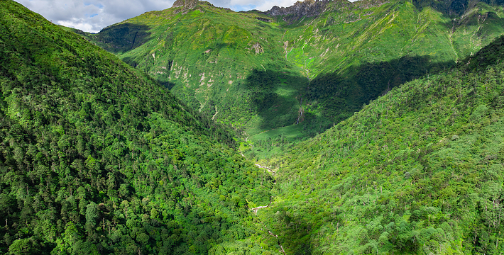 怒江的西岸。保护区东西宽9千米,南北长135千米,总面积12万公顷。山势陡峭,峰谷南北相间排列,有着极典型的高山峡谷自然地理垂直带景观和丰富多样的动植物资源。这是横断山脉中的一颗明珠,森林覆盖率达85%,高山峡谷复杂的地形和悬殊的生态环境,为各种动植物提供了有利的自下而上条件。高黎贡山巨大的山体挡住了西北寒流的侵袭,又留住了印度洋的暖湿气流,使地处低纬度高海拔的保护区,形成了典型的亚热带气候。在东西坡海拔1600-2800米地区,是自然保护区的主体,它连接东喜马拉雅区。在这里,森林资源极期丰富,珍稀植物随处可见。有当今世界上是大的杜鹃树种―500多年树龄的大树杜鹃;有被称为“绿色寿星”的古老孑遗植物――国家一级保护珍稀树种秃杉;有云南樱花的原始种、云南山茶的原生种,以及其它珍稀树种,是我国珍稀树种汇集的森林。