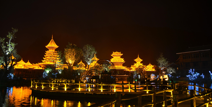 肇兴侗寨位于黎平县南面,距县城41公里,座落于一个东西走向的狭长谷地。人口860多户,3800多人,全为侗族。寨内有5座鼓楼、5个戏台、5座花桥、3座萨坛,2条小溪横贯寨中。肇兴侗寨始建于宋朝(960-1279年),原名“肇洞”。居民有赢、满、万、白、马等12个家族,即12个“斗”,组合成仁、义、礼、智、信5个“团”。所有居民都有内外两个姓:内姓,为各家族成员原有的姓;外姓,为大家在社会生活中共同使用的姓,即陆姓。“斗”以血缘为纽带,“斗”内不能通婚。“团”则以地缘为基础,“团”内各“斗”间可以通婚。数百年来,肇兴人民创造了独特的鼓楼文化、大歌文化、款约文化和“萨文化”。自1993年以来,肇兴获得了以下殊荣:1993年,肇兴被省文化厅命名为“鼓楼文化艺术之乡”;2001年,肇兴鼓楼群被列入“吉尼斯世界大全”;2003年,国家文化部将她纳入全国首批民族民间文化保护项目;2004年,以肇兴为中心的黎平侗乡风景名胜区被国务院批准为“国家重点风景名胜区”;2005年,被《中国国家地理》”;2007年,被中国《时尚旅游》杂志和美国《国家地理旅行者》33个旅游地之一。2009年,被住建部和文化部共同批准为中国历史文化名村。