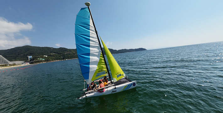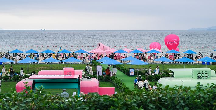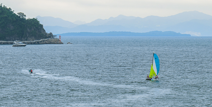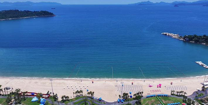 小梅沙则三面环海,小家碧玉的美洁白沙滩比邻而居,蔚蓝海水联袂而漾。