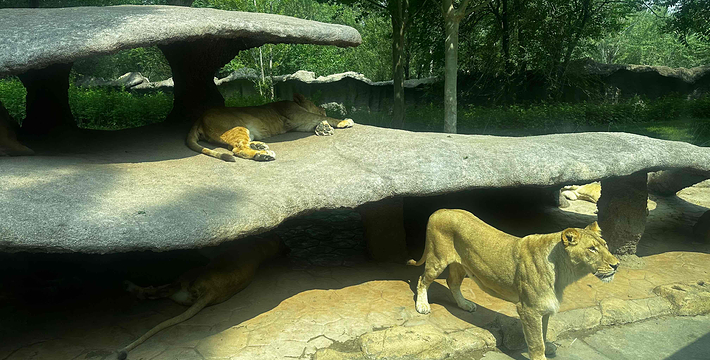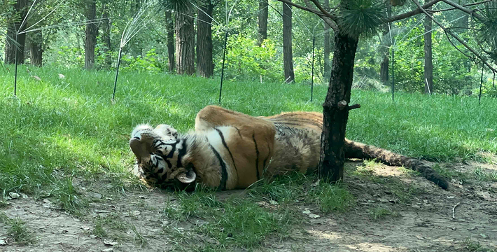 狮虎混养区,有8只幼狮和11只幼虎成*地在一起和睦相处,这在国内外是少见的景观。