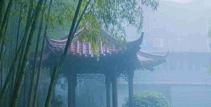 如琴湖座落西谷,峰岭围抱,森林蓊蔚,环境幽雅。湖心立岛,岛内有许多人工饲养的孔雀,所以名为 孔雀岛,曲桥连接,上缀水榭,形成绿水青山,相映成趣。