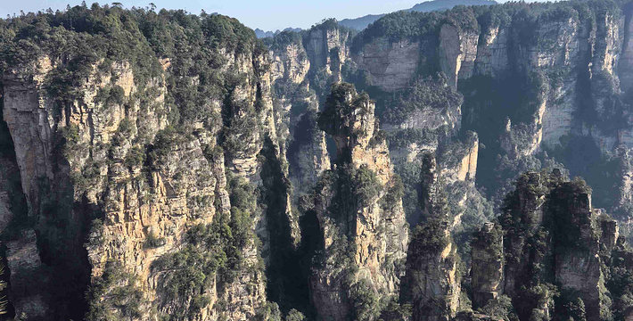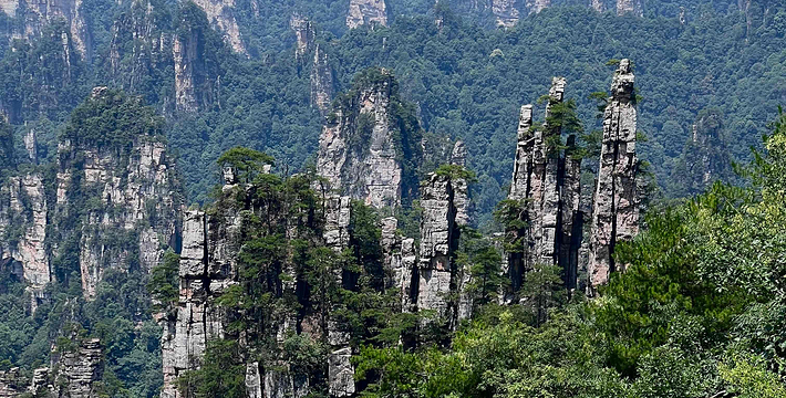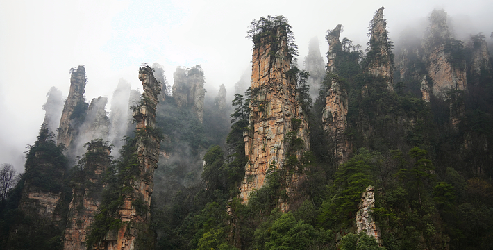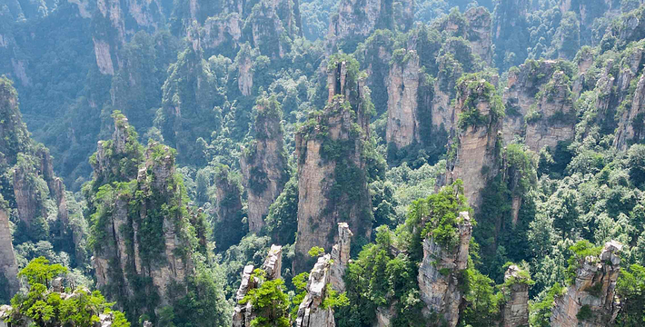 张家界国家森林公园三千座石峰拔地而坡,形态各异,峰林间峡谷幽深,溪流潺潺。春天山花烂漫,花香扑鼻;夏天凉风习习;秋日红叶遍山,山果挂枝;冬天银装素裹,满山雪白。公园一年四季气候宜人,景色各异,是人们理想的旅游、度假、休闲目的地。三千奇峰,八百秀水,演绎出张家界国家森林公园的传奇,展示着自然之美。张家界国家森林公园张开热情的双臂欢迎您!