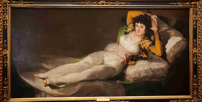 马德里的博物馆不少,收藏了大量15至18世纪的油画。建于1785年,自1819年即被视为皇家的附属博物馆,收藏作品多以哈布斯及波尔梦两王朝所藏者为主,此外又增购或接受捐献,目前拥有三千件以上的珍贵作品,意大利派的作品也不少。如以画家而言,有114件油画、470件素描,其中以“裸体的玛亚”、“穿衣的玛亚”、“加尔罗斯四世家族”。高迪的作品发展可分为三个阶段:樱桃红时期的代表作是“阳伞”,政治时期的代表作是“五月三日”,黑色时期的代表作是“被土星蚀去的小孩”。